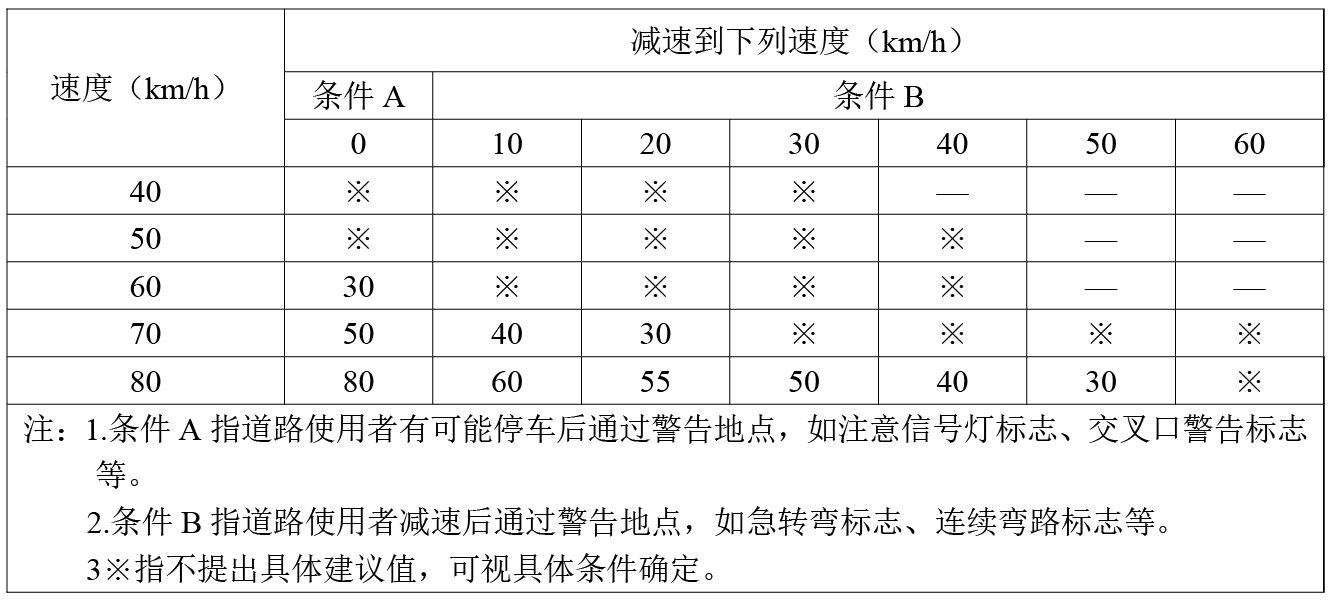 (2)縱坡坡度小于上表規定值,但經常發生制動失效事故的下坡路段也可根據現場條件設置。