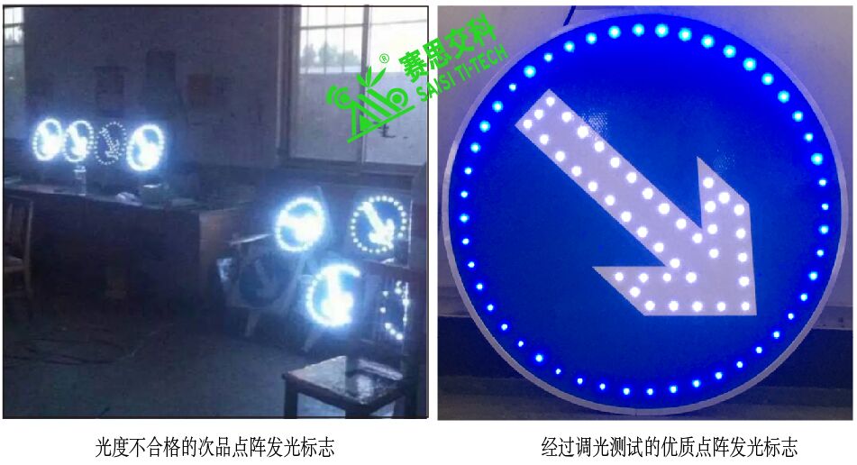 不僅是非生產業內的客戶,甚至有些從事發光標志生產不久的廠家,都想當然地認為“主動發光標志不就是能發光的標志嘛!給標志裝上LED發光管就是發光標志!”,而我要說的是:“led發光管+標志牌 ≠ 主動發光標志;能發光的標志,不一定算是主動發光標志!!”,主動發光標志作為重要的交通語言發光載體,其光源特性,不同于照明功能的路燈,也不同于警示功能的爆閃燈,其屬于光信息功能范疇,其光強要在人眼視認的舒適區間內,既不能過分追求太亮而刺眼,也不能為節省能源損耗,而過于偏暗,要達到版面亮度舒適,讓駕駛員人眼舒適地對光信息進行讀取、辨認、識別、認知,其需要根據具體版面的內容特征,和安裝位置的環境照顧,進行調光測試給出系列值,并提供動態自動修正的功能。不是毫無依據,很隨意地給標志安裝上LED發光管,就可以提供給交通工程應用。