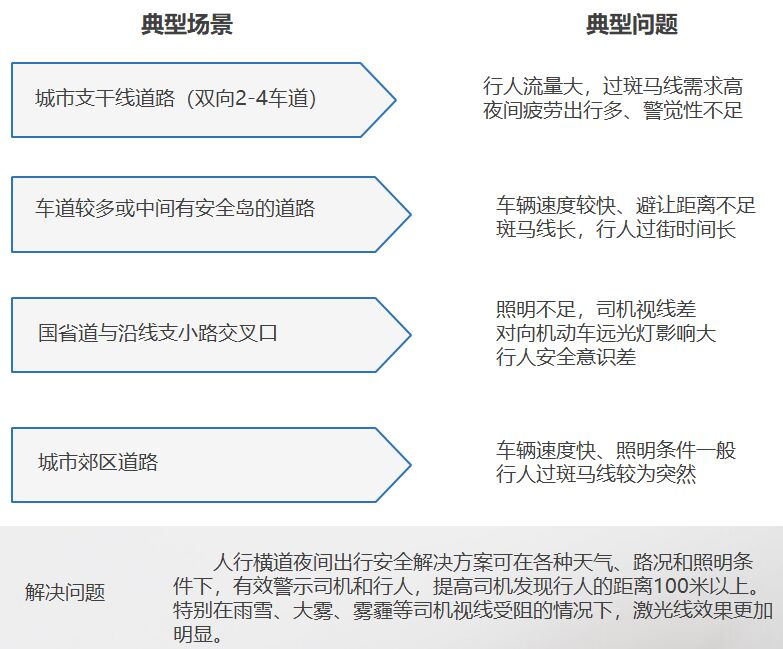 • 消除照明不足路口的安全隱患 ,解決惡劣天氣能見度較低時車輛識別行人的難點